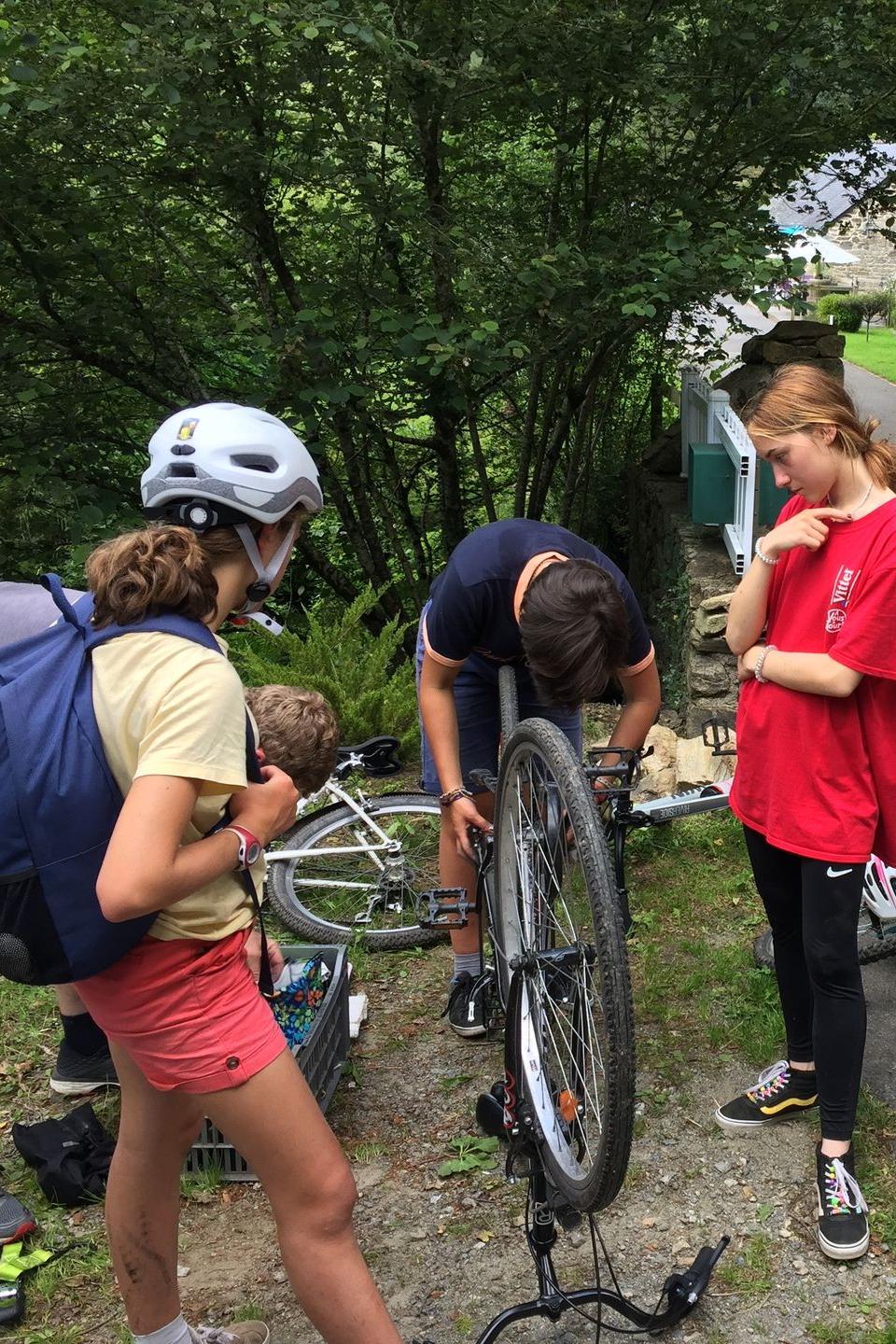 - un kit de réparation (1 chambre à air neuve adaptée au vélo, des rustines, des démonte-pneus, il peut être bon de prévoir une paire de patins de frein en réserve)